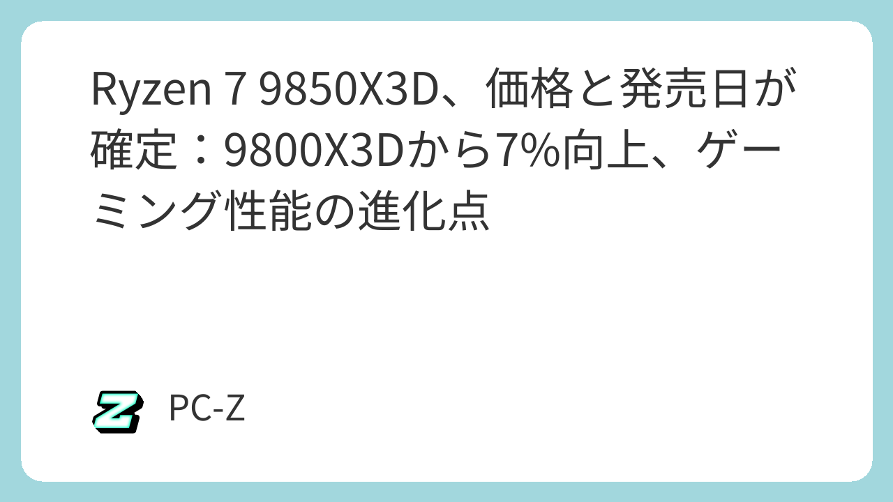 AMD Ryzen 7 9850X3Dは、Zen 5アーキテクチャと改良された3D V-Cache技術の組み合わせにより、ゲーミング性能の頂点を塗り替える製品として確定した。