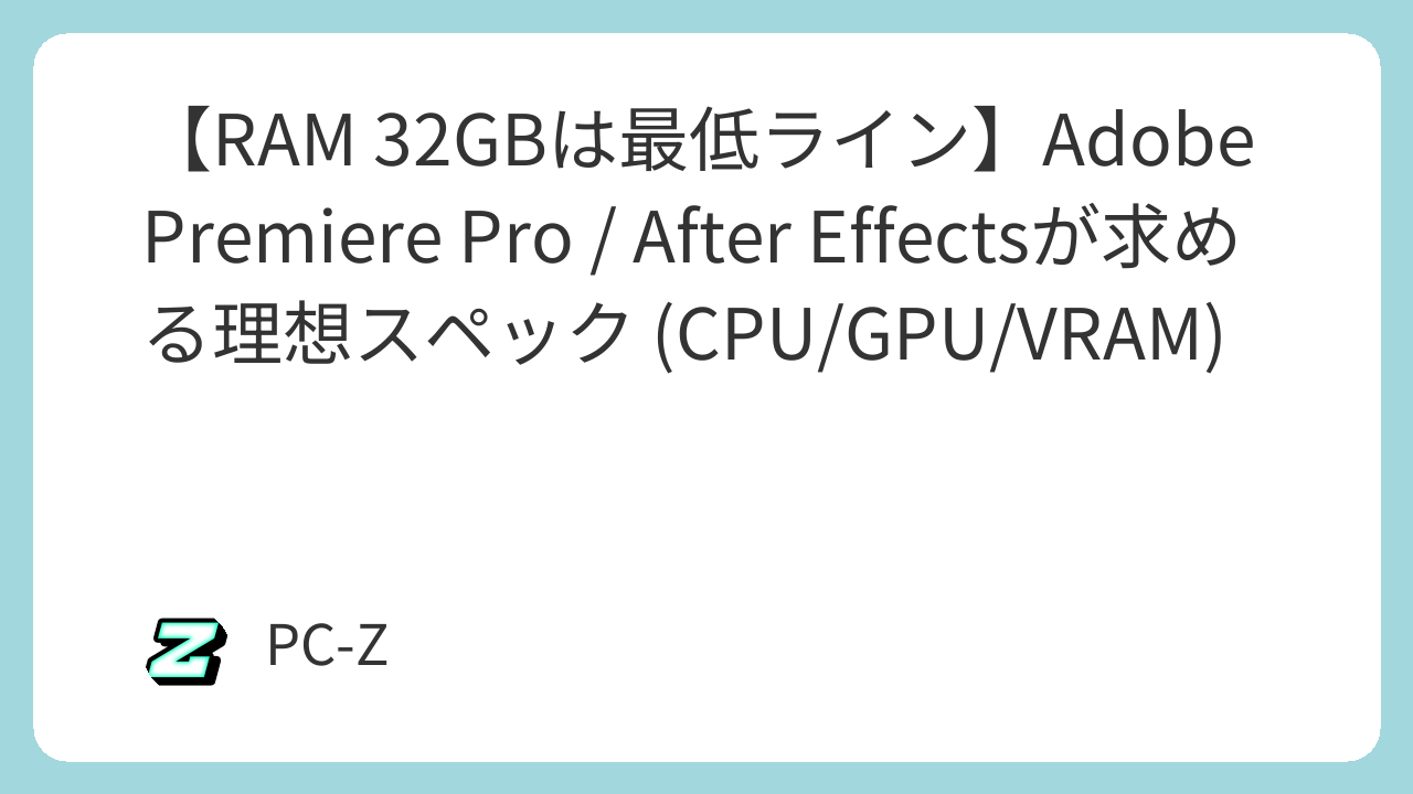 「推奨16GB」は、PremiereとAfter Effectsの同時起動ですぐに限界が来ます。快適な作業には32GBが必須、理想は64GBです。32GBのRAMは、Adobe Premiere ProのようなRAM集約型のアプリケーションに最適です。