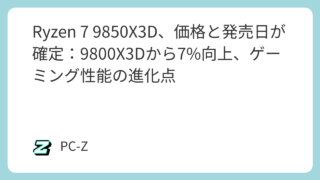 AMDの次世代ゲーミングCPUとして大きな注目を集めていた「Ryzen 7 9850X3D」の販売が開始された。本機はZen 5アーキテクチャを採用したRyzen 9000シリーズの中でも、特にゲーミング性能を重視した3D V-Cache搭...