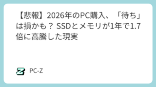 「少し待てば安くなるだろう」自作PCやBTOパソコンの購入において、その経験則はもう通用しないかもしれません。2026年に入り、PCパーツ市場は異例の事態に直面しています。CPU、メモリ、SSD、あらゆる主要パーツが右肩上がりで高騰を続けて...